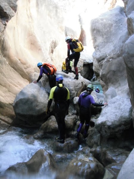 Un barranco espectacular y muy acuático en el que no necesitas ni cuerda ni arnes. La espalda lo agradeció.